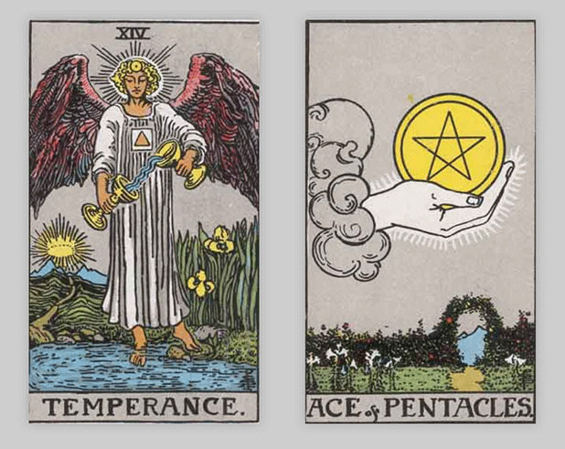 タロットカードでは「節制」と「ペンタクルのエース」が出ました。