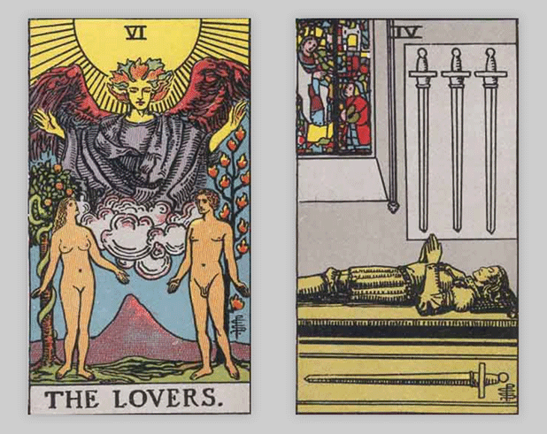 タロットカードでは「恋人」と「ソードの4」が出ました。