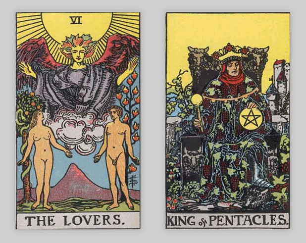タロットでは「恋人」と「ペンタクルのキング」が出ました。この組み合わせは、誠実な愛と成熟した情熱を意味しています。