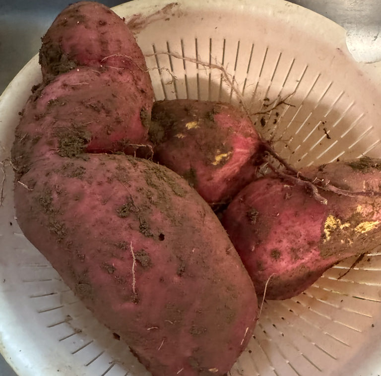 そして、以前「葉が茂ってきて楽しみ」と書いたさつまいもを、ついに収穫しました!(収穫したのは父ですが)
