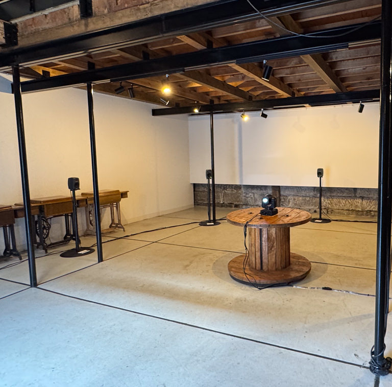 私は石田さんの作品のセッティングの日に伺い、コードをまとめるお手伝いをしてきました。