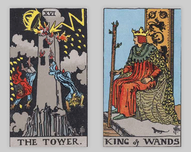 タロットカードでは「塔」と「ワンドのキング」が出ました。