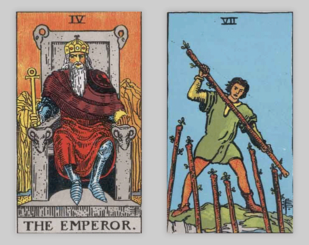 タロットでは「皇帝」と「ワンドの7」が出ました。