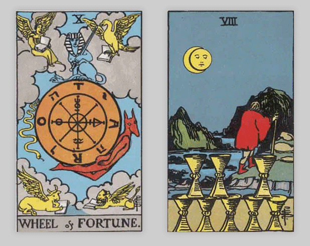 タロットでは「運命の輪」と「カップの8」が出ました。