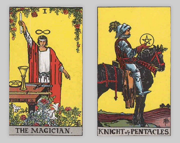 タロットでは「魔術師」と「ペンタクルのナイト」が出ました。