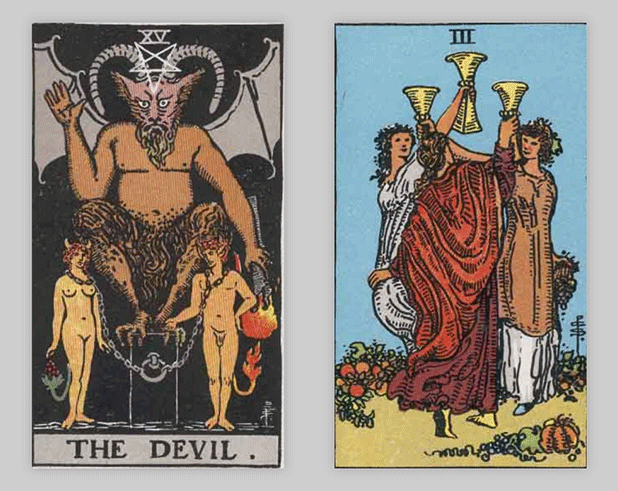 タロットカードでは「悪魔」と「カップの3」が出ました。