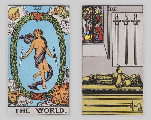 タロットカードでは「世界」と「ソードの4」が出ました。