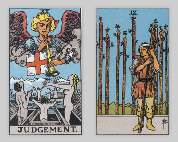 タロットカードでは「審判」と「ワンドの9」が出ました。