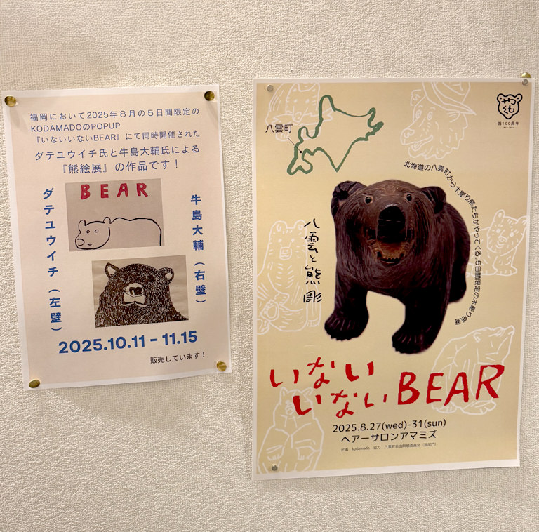 一方、ダテユウイチさんと牛島大輔さんの展示では、8月に福岡で行われた「いないいないBEAR」展の作品を見ることができます。