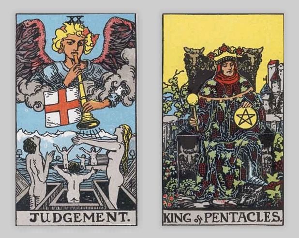 タロットカードでは「審判」と「ペンタクルのキング」が出ました。