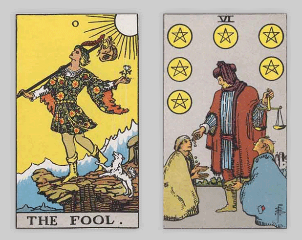タロットカードでは「愚者」と「ペンタクルの6」が出ました。