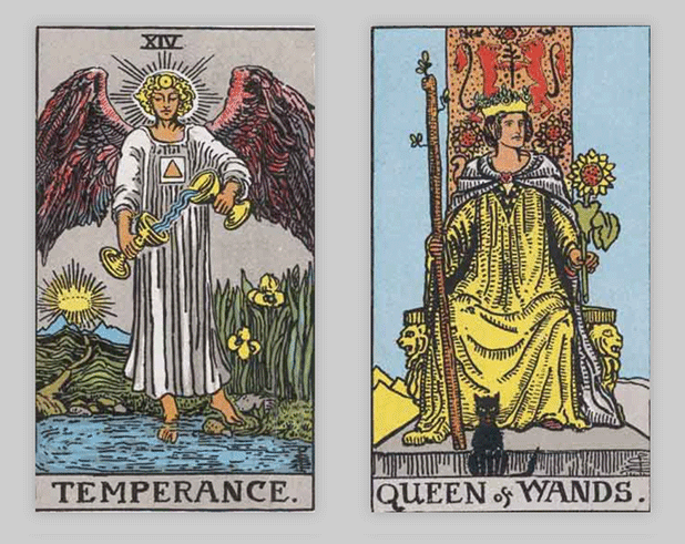 タロットカードでは「節制」と「ワンドのクイーン」が出ました。