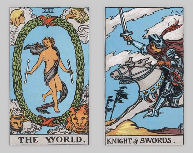 タロットカードでは「世界」と「ソードのナイト」が出ました。