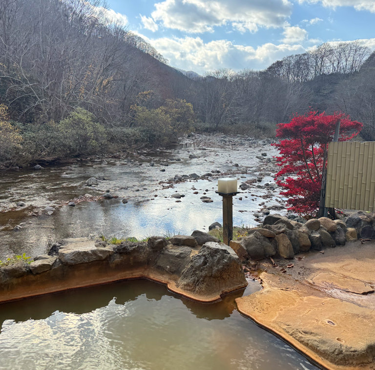 次は、お客様が入る前に撮らせてもらった「見市(けんいち)温泉」男湯の露天風呂。