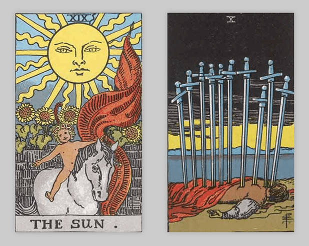タロットカードでは「太陽」と「ソードの10」が出ました。
