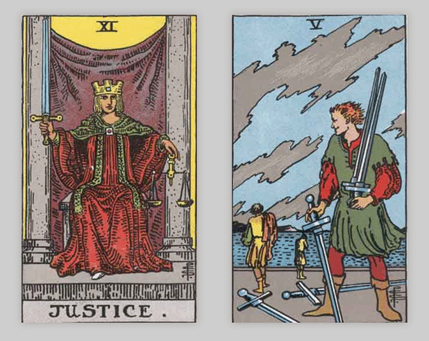 タロットカードでは「正義」と「ソードの5」が出ました。