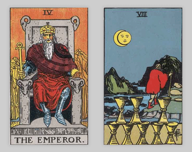 タロットカードでは「皇帝」と「カップの8」が出ました。
