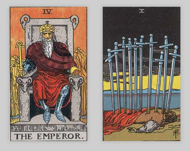 タロットカードでは「皇帝」と「ソードの10」が出ました。