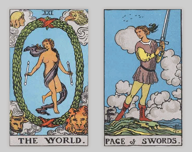 タロットカードでは「世界」と「ソードのペイジ」が出ました。