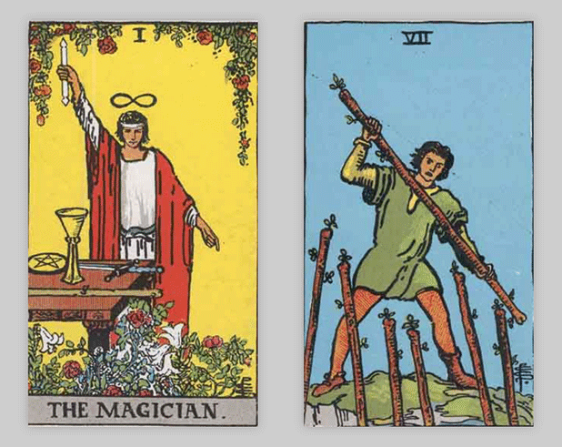 タロットカードでは「魔術師」と「ワンドの7」が出ました。