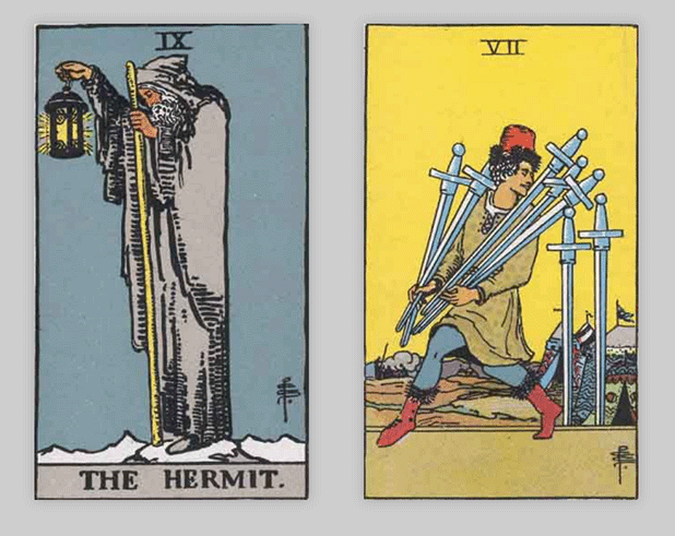 タロットカードでは「隠者」と「ソードの7」が出ました。