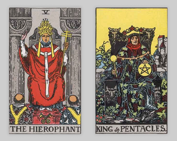 タロットカードでは「法皇」と「ペンタクルのキング」が出ました。
