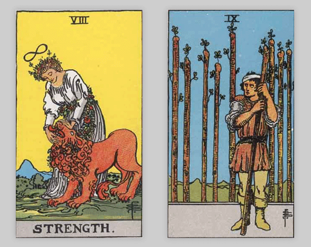 タロットカードでは「力」と「ワンドの9」が出ました。