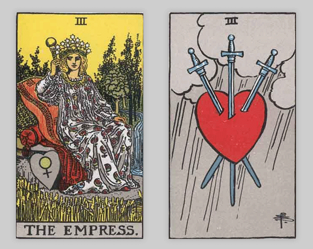タロットカードでは「女帝」と「ソードの3」が出ました。