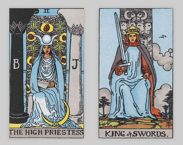 タロットカードでは「女教皇」と「ソードのキング」が出ました。