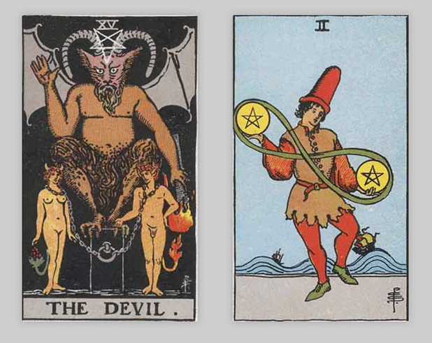 タロットカードでは「悪魔」と「ペンタクルの2」が出ました。