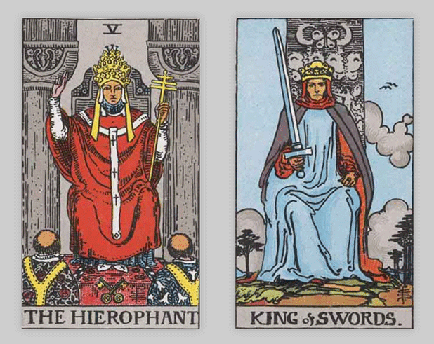 タロットカードでは「法皇」と「ソードのキング」が出ました。