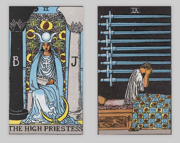 タロットカードでは「女教皇」と「ソードの9」が出ました。