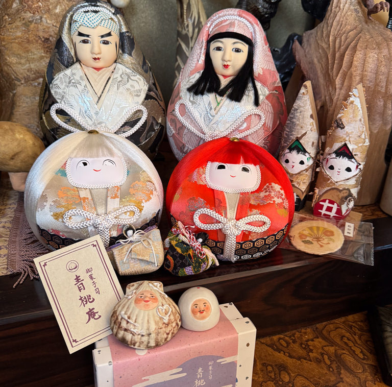 40年くらい前に行商の方が家に売りに来た姫だるまたちと、ひな祭りっぽいものたちを並べてみました。