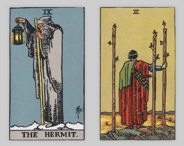タロットカードでは「隠者」と「ワンドの3」が出ました。