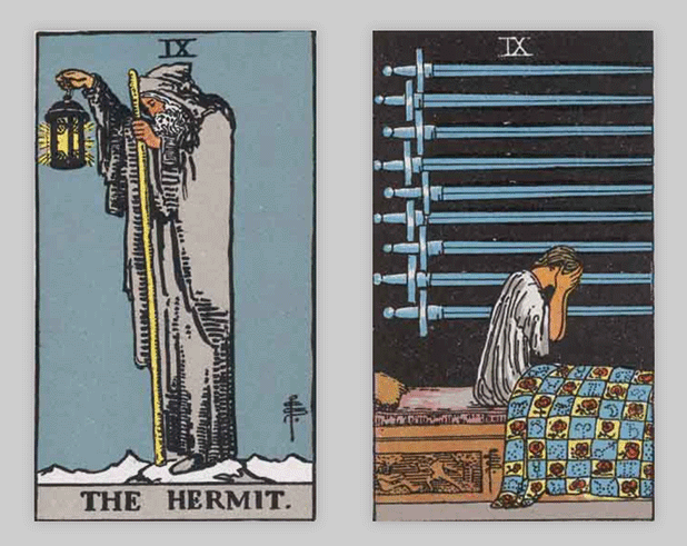 タロットカードでは「隠者」と「ソードの9」が出ました。