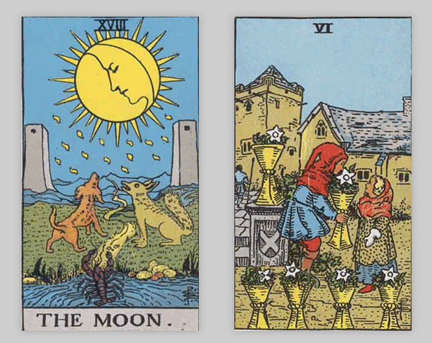 タロットカードでは「月」と「カップの6」が出ました。